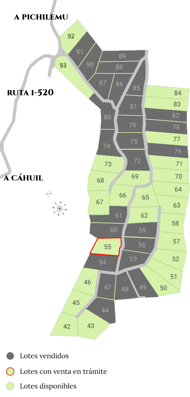 Un conjunto conformado por 52 parcelas de agrado de 5.000 m2, situados en suaves